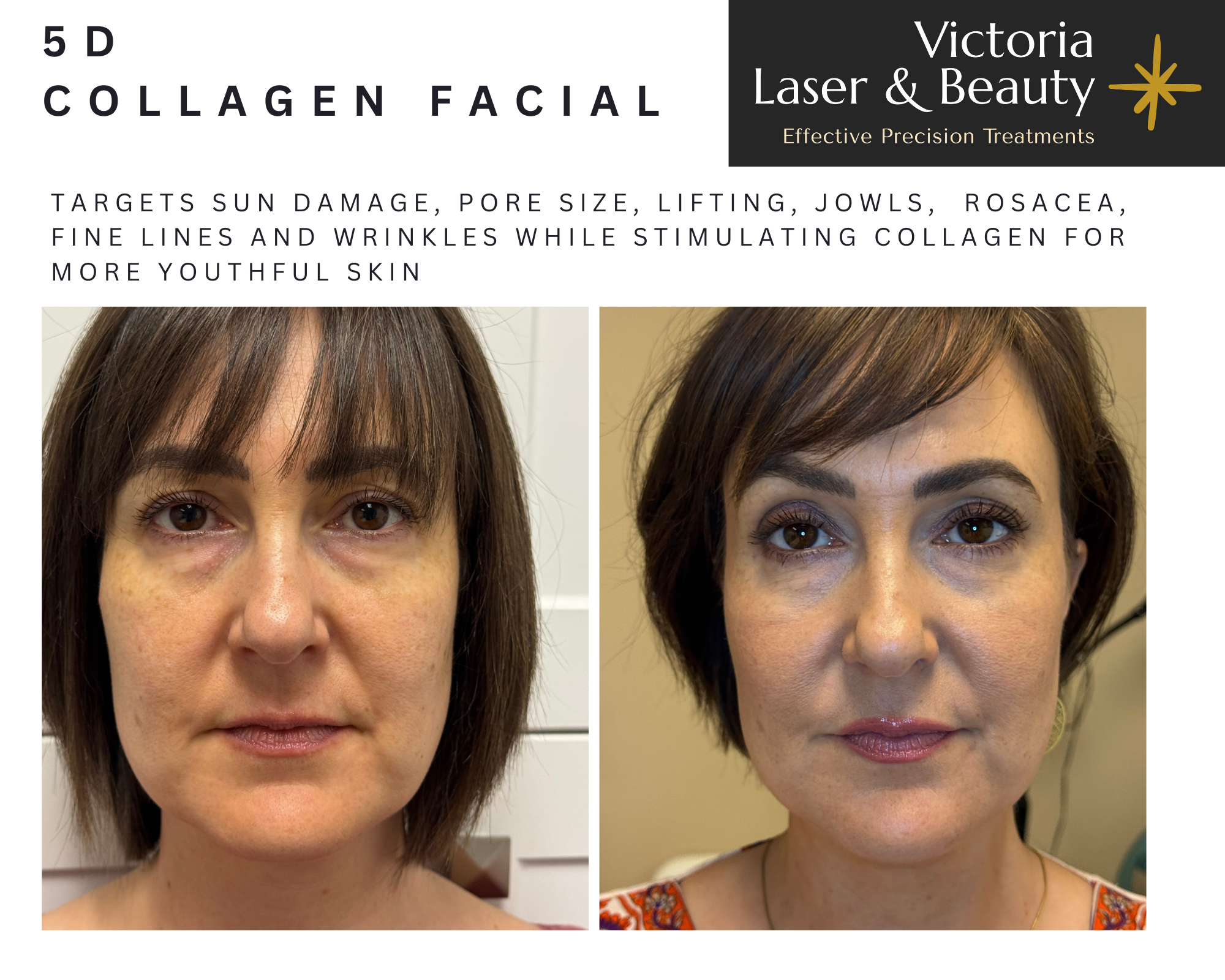 The 5D facial treatment addresses five key skin components: moisture, melanin, hemoglobin, collagen and fat deposits. This comprehensive approach allows for the simultaneous treatment of multiple aging concerns, such as sagging skin, uneven skin tone, and fine lines in a single session. The dual-wavelength technology used in the 5D facial treatment is designed to target these components effectively, providing a complete solution for skin rejuvenation.